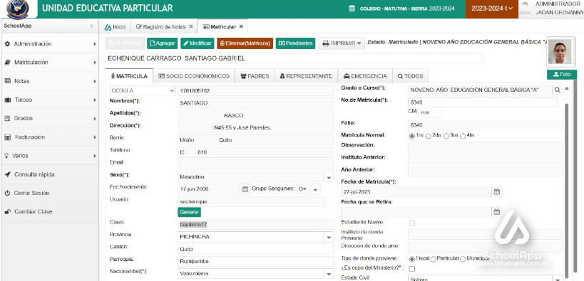 Software administrativo de calificaciones, notas, tareas y otros